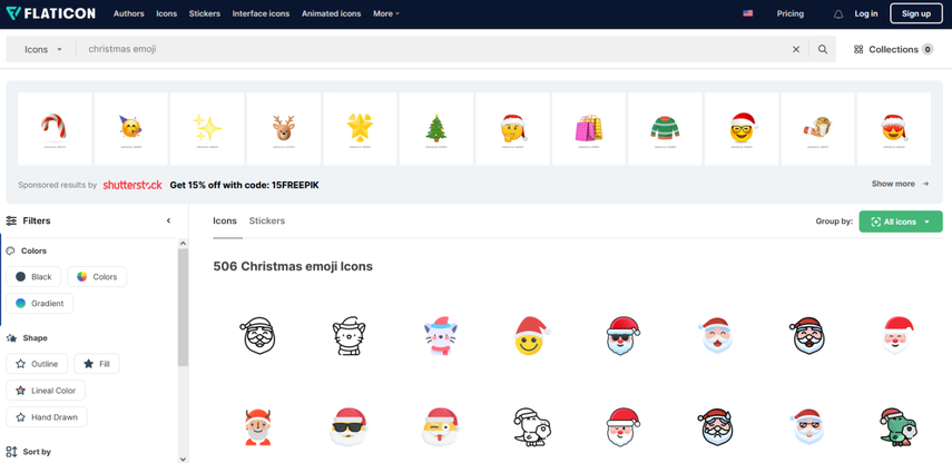 Flaticon’s intuitive website design makes it easy to find and use emojis for your holiday messages or creative projects. It offers an extensive collection of static and animated emojis, including Christmas-themed ones. You can sort them out by color and shape and download them in different file formats. Flaticon’s Christmas emojis include everything from Santa hats to candy cane.